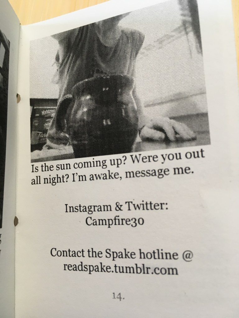 Spake was supported by a Small But Mighty Arts micro-grant in 2016.